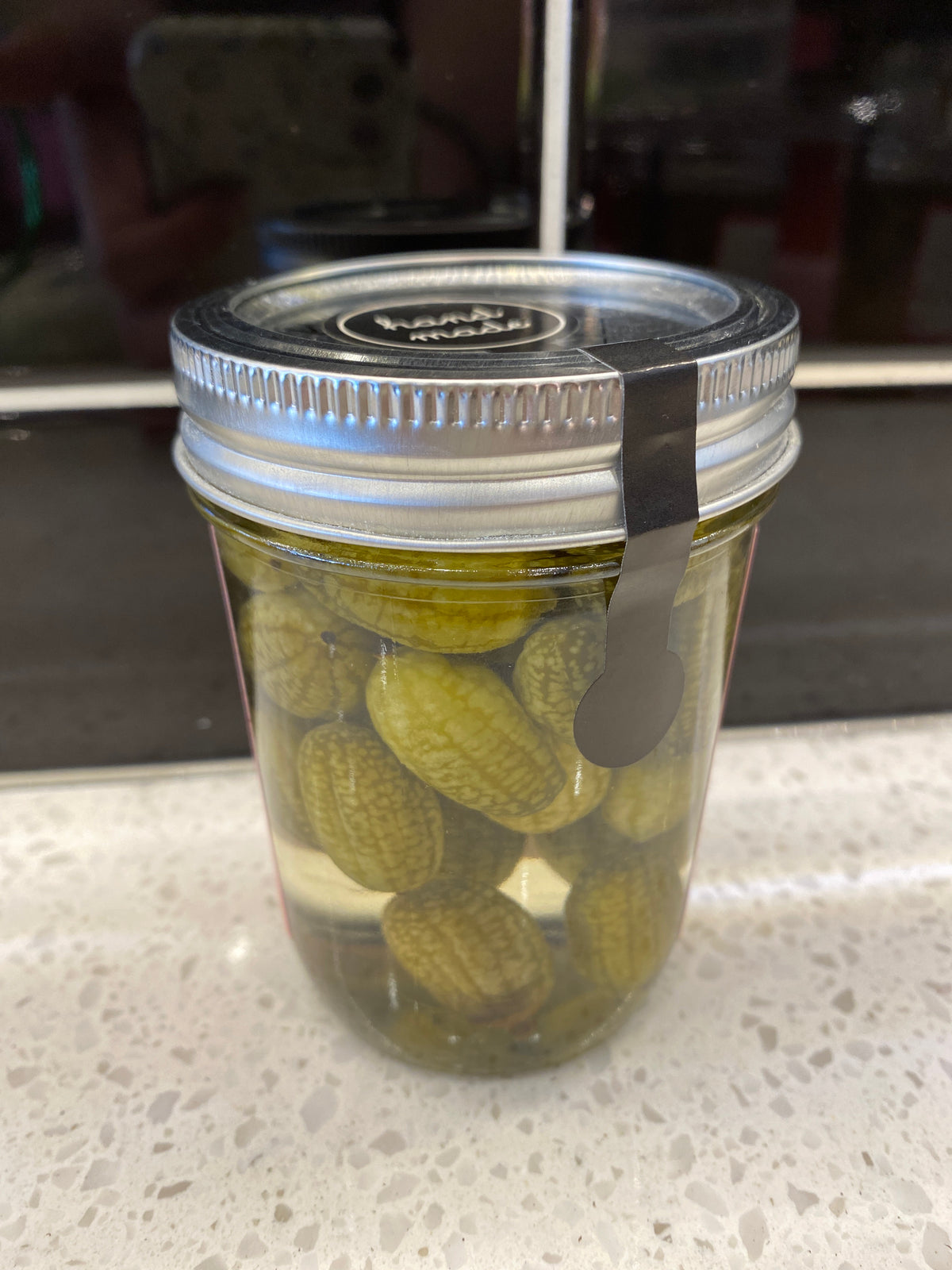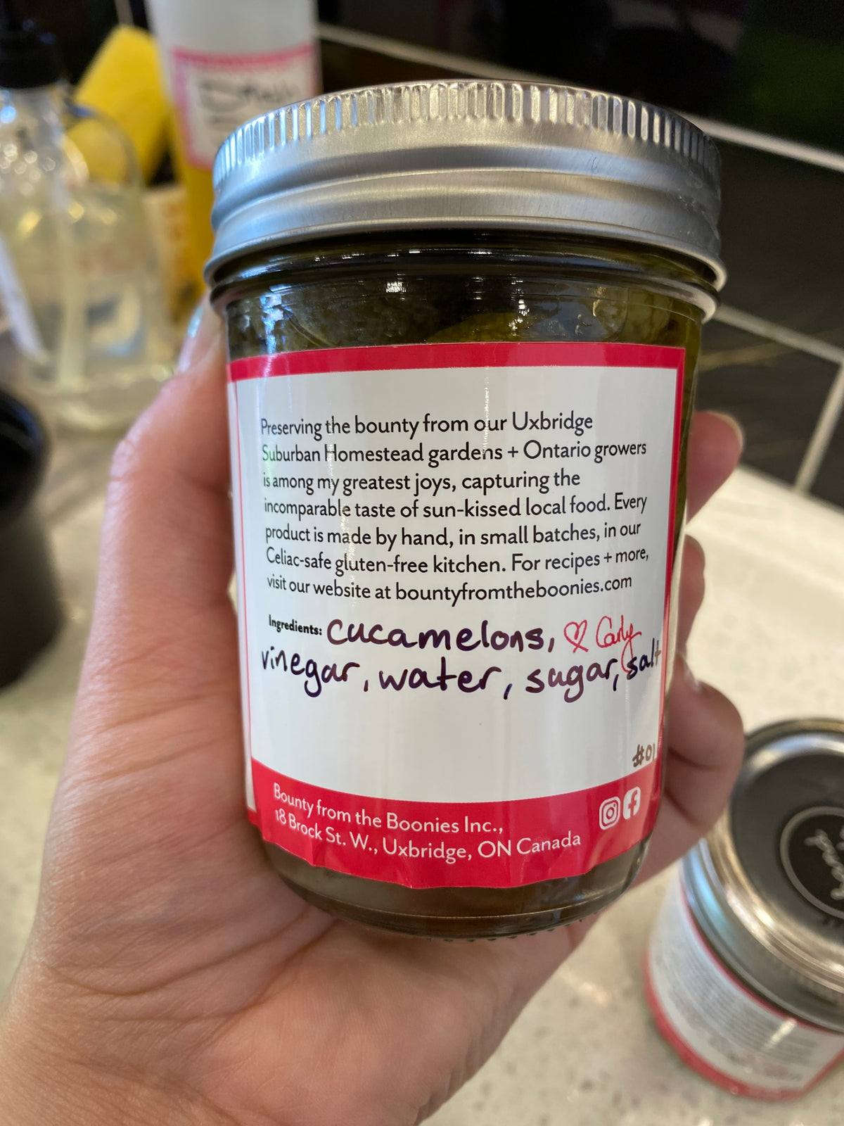 Unit price perThis unique pickle is must have for salads, charcuterie, cocktails, or garnish! The crunchy skin and soft inside gives you a burst of flavour with every bite! Made with fresh Cucamelons harvested from our Uxbridge Homestead Gardens, this pickle is bound to get people talking!
