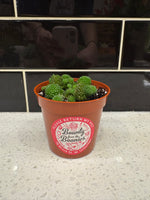 Monanthes polyphylla is a small, low growing succulent native to the Canary Islands. It's known for forming dense clumps of tiny rosettes.  They have small green, cylindrical leaves that often develop reddish hues in good light.  They can also bloom star-shaped flowers in yellow, orange, or purple.
