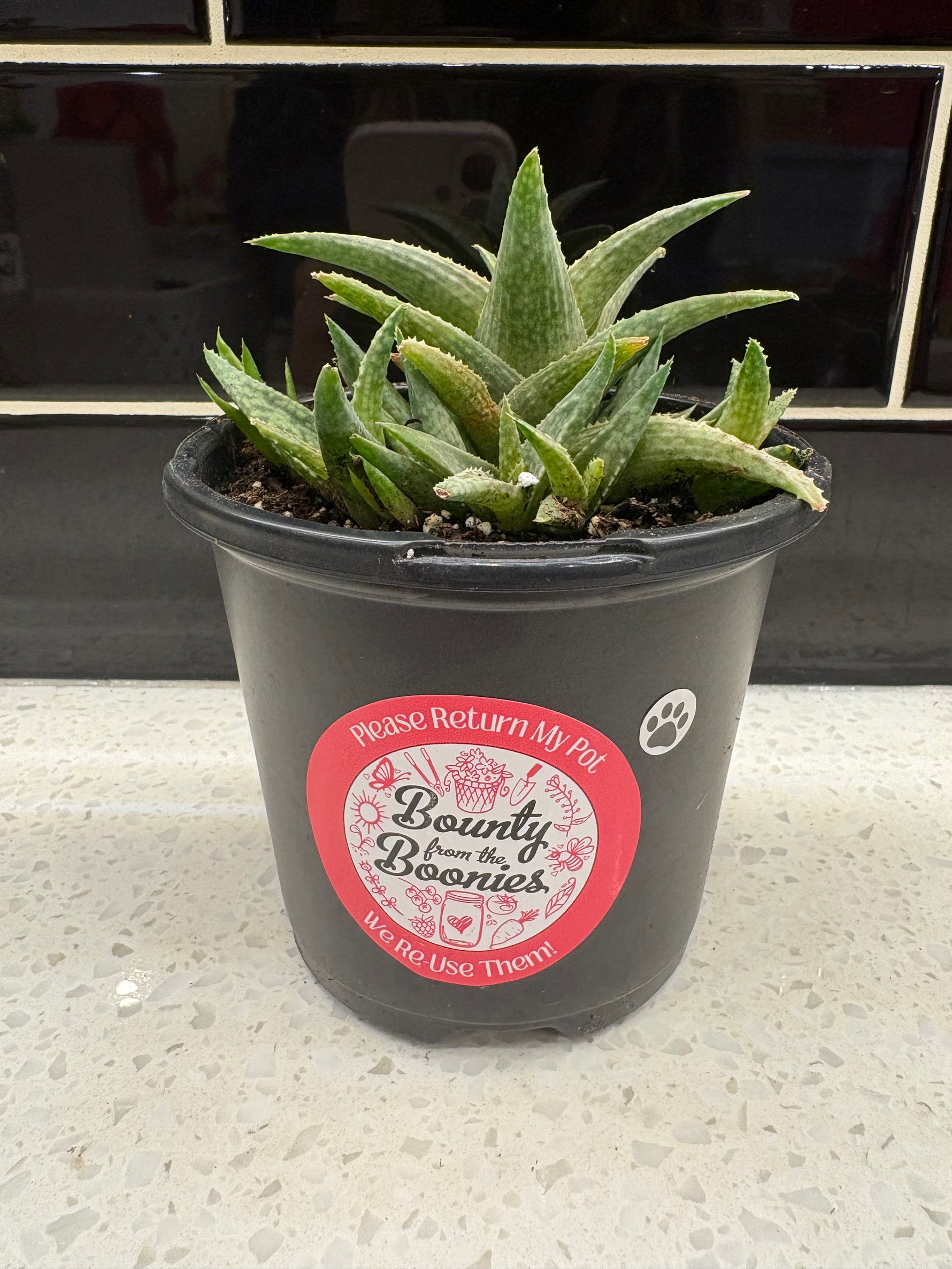 Lizard Tail is a popular, low-maintenance succulent known for its fleshy, dark green leaves covered in white bumps that form rosettes, resembling a lizard textured skin.  Originates from South Africa, which is why this plant is drought tolerant. Under ideal conditions, it produces pale orange flowers on tall stalks.