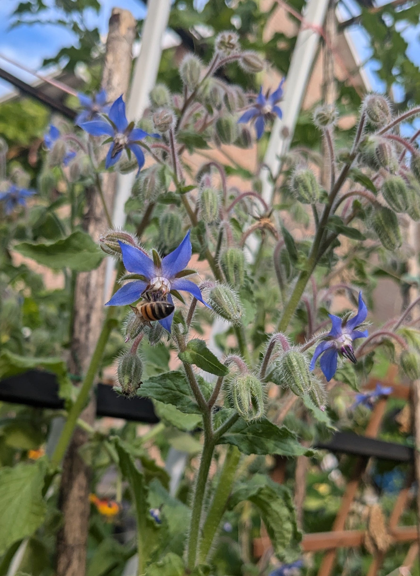 Unit price perI will never have a food garden without Borage. This stunning herb has unique blue-purple star-shaped flowers that pollinators - especially bumble bees - absolutely crawl over all season long. Every part of this plant is edible! It has a mild, cucumber-like taste that's delicious in salads and beverage garnishes. I dry the flower heads for bath salts, soap making + crafts, and when frozen in ice cubes Borage makes a whimsical addition to drinks.