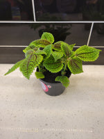 This unique pilea has beautifully textured bright green leaves with red highlights.