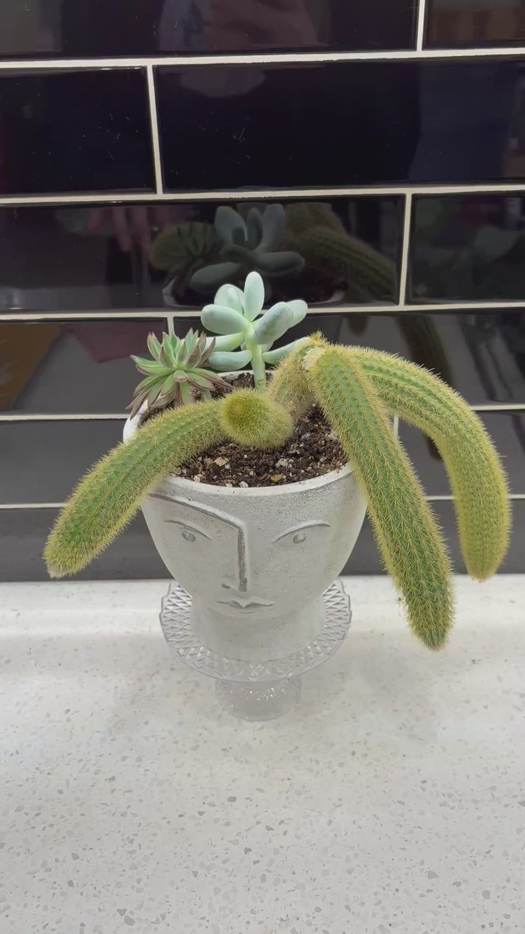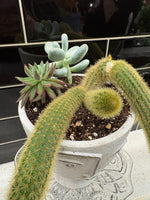 This potted goddess includes a Rat Tail Cactus and two succulents!
