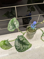 This plant originates from the tropical rainforests of Southeast Asia. With it's beautiful green, heart-shaped leaves with silver shimmery pattern, this pothos stands out. Their painted looking leaves is why this plant was named "pictus," which is Latin for "painted"!